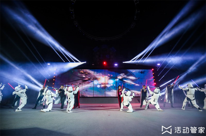 最后是风格上的创意体现。如签到环节可设置投木牌、梅花卷轴或其他定制型签到方式,合影不仅可以站着拍照、坐着拍照、还可以躺着拍照,开场除cosplay的主题T台秀、定制BOSS秀,还可以以趣味舞台剧、脱口秀创意开场。除这些环节,还可在抽奖环节做些创意点,如恐怖箱抽奖、心愿抽取,或将奖项设置为“加班一小时”、“迟到一小时”等创意奖项。